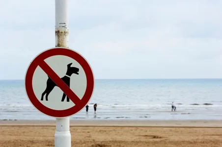 Fuck-my-life again. As we approach we find ‘No Dogs On Beach’ signs. What the fuck.
